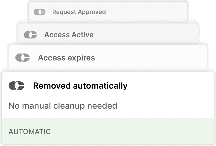 Console provisions access via SCIM, APIs, or workflows, and removes it automatically when it expires.