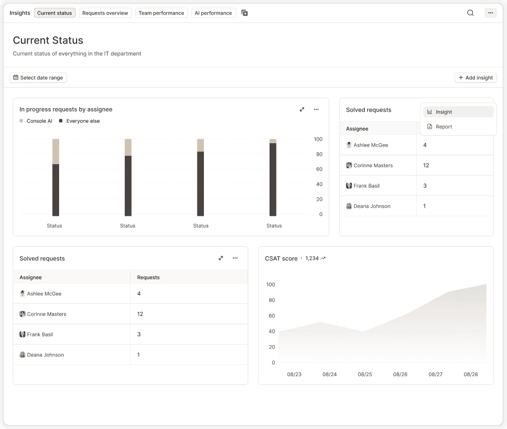 Console shows where IT time is going, which requests should be automated next, and where teams are still firefighting so leaders can actually drive leverage.