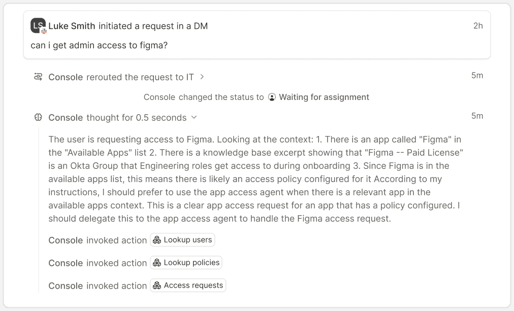 When automation isn’t appropriate, Console hands it to a human with full context.
