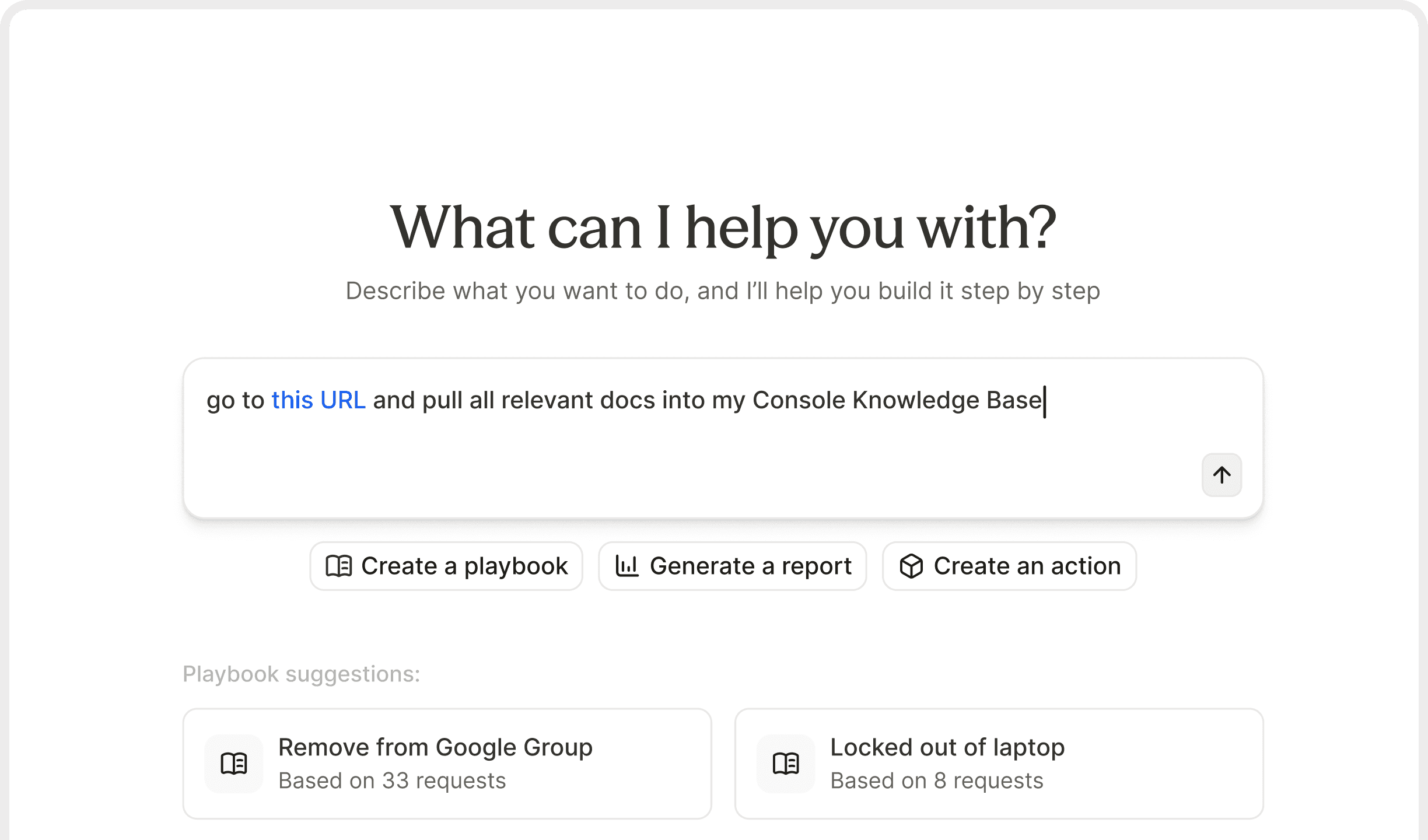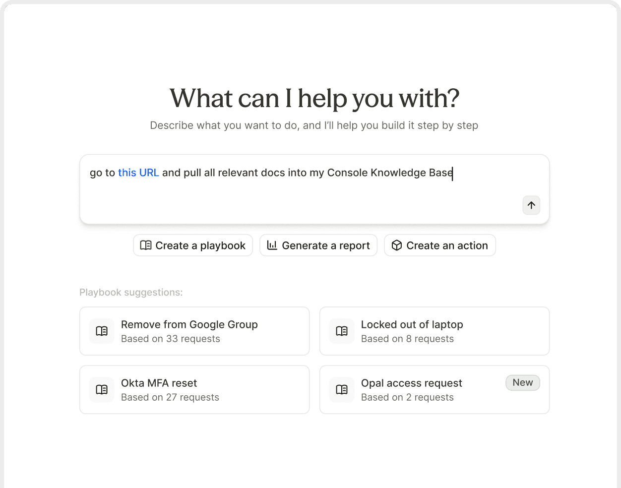 Using AI tools should feel like talking to another member of your team. Natural language input means you can simply tell Console what you need. It listens and responds thoughtfully in order to help you achieve your desired outcome.