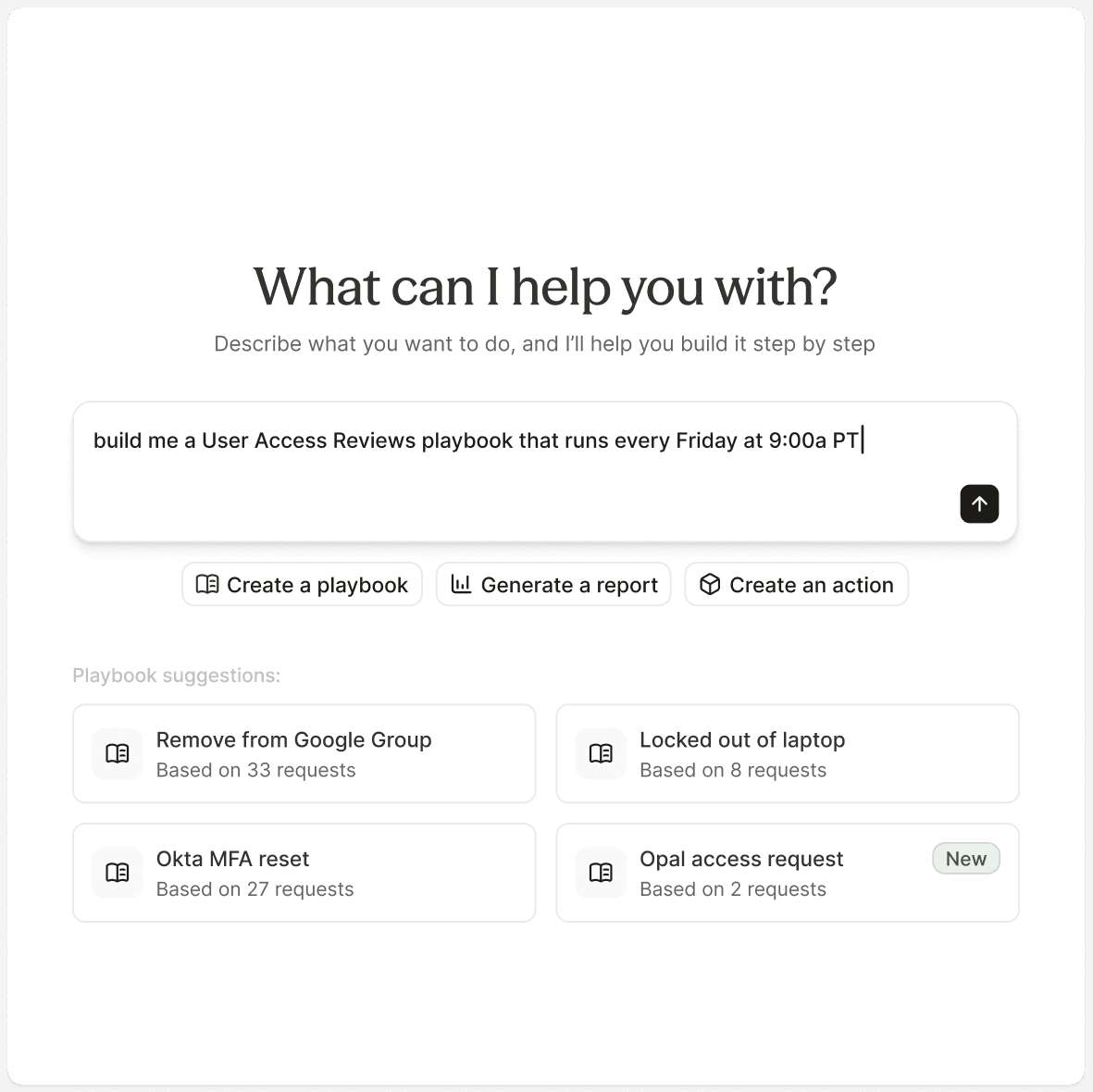 Use Assistant to make the Playbook writing process even more frictionless. Tell it the trigger, the outcome, the systems involved and it builds the Playbook for you.