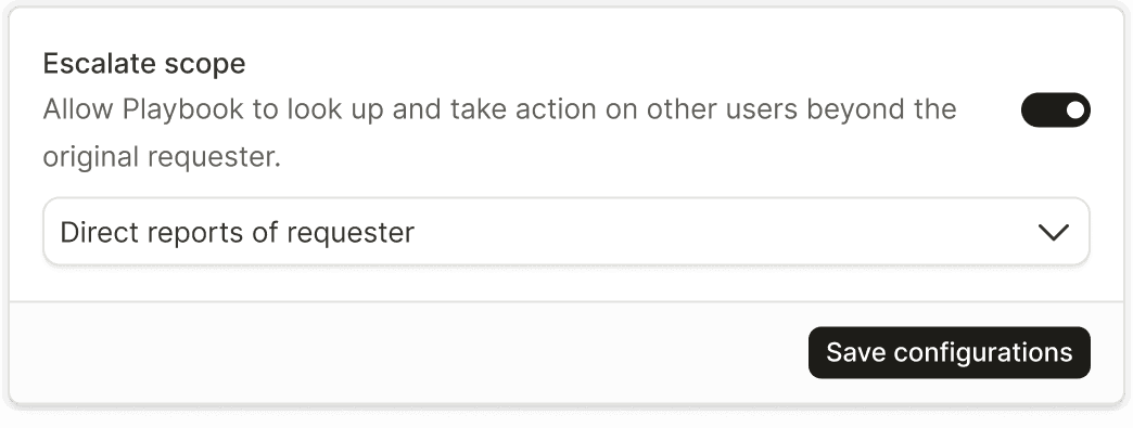 Restrict automations to self-service workflows. By default, automations can perform actions on the requester only. Elevate scopes to empower managers or admins to run flows on behalf of others.