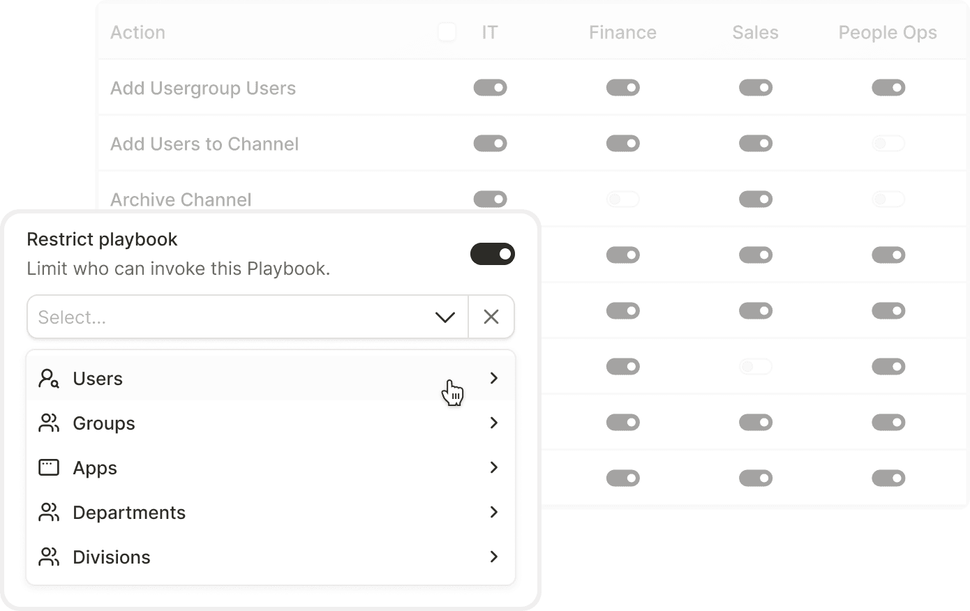 Can I disable certain integrations or actions for specific teams?